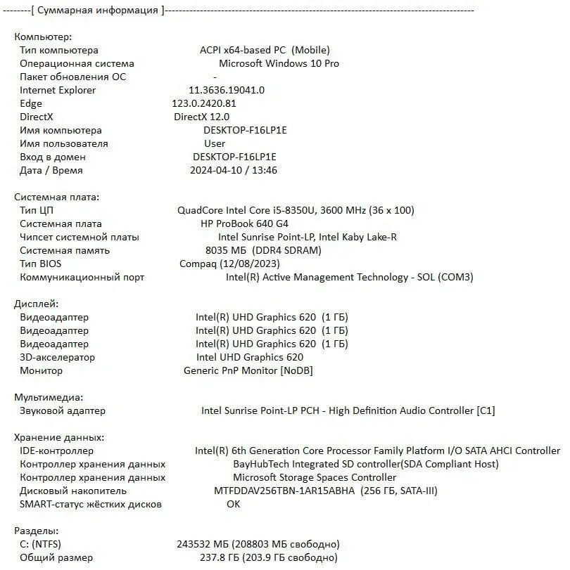 - Модель: HP Probook 640 G4