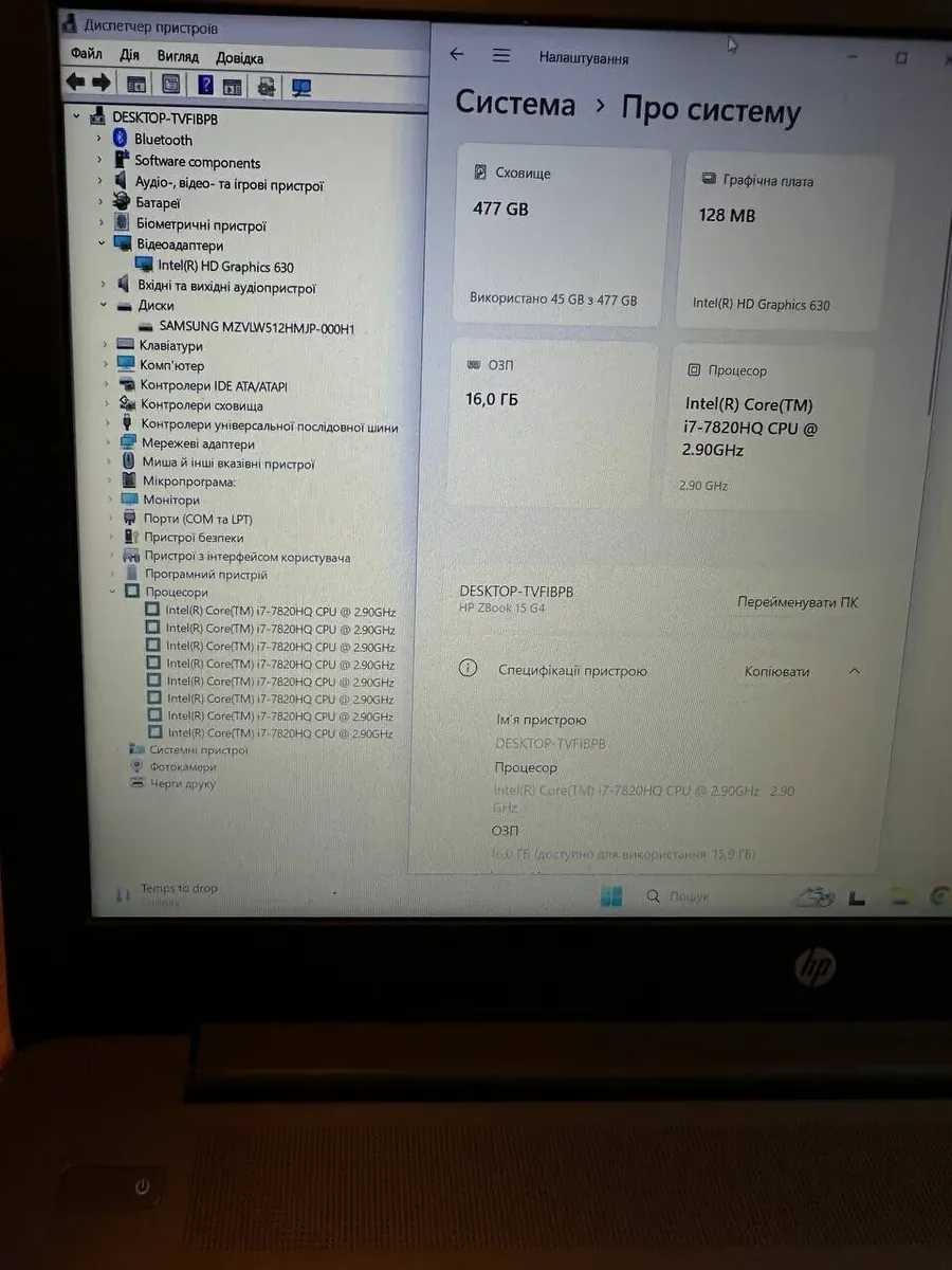 - Модель: HP ZBook 15 G4