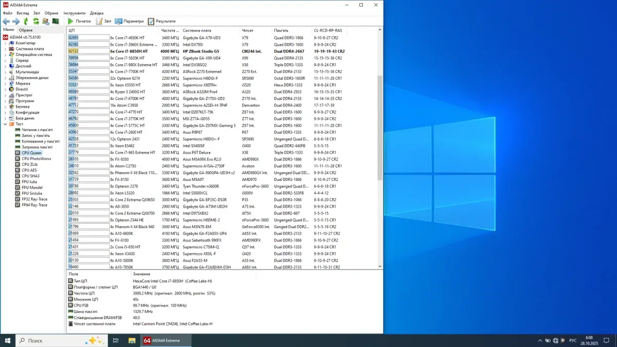- Процесор: Intel Core i7-8850H (6 (12) ядер з тактовою частотою 2,6–4,3 ГГц), 9 МБ Smart Cache