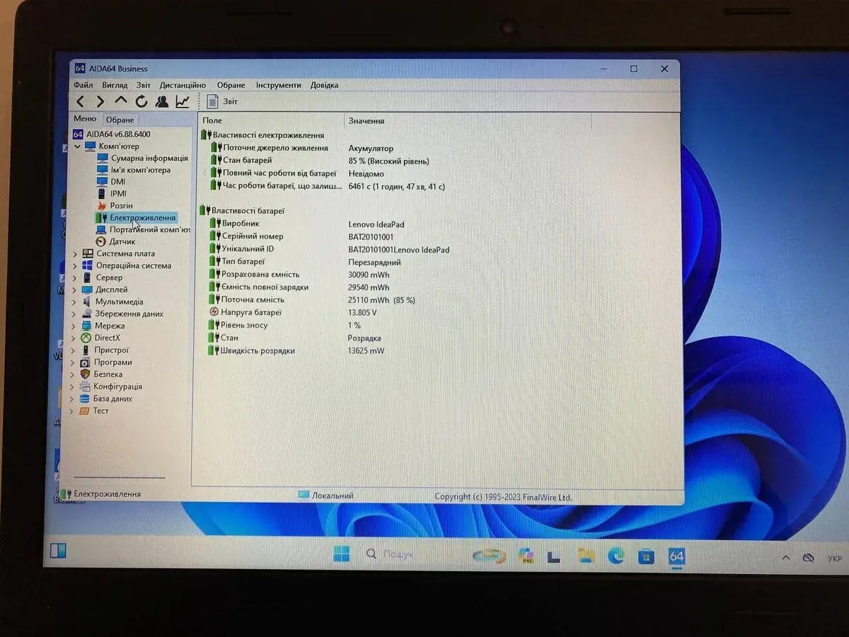 - Комплектація: ноутбук, зарядний пристрій, наклейки на клавіатуру