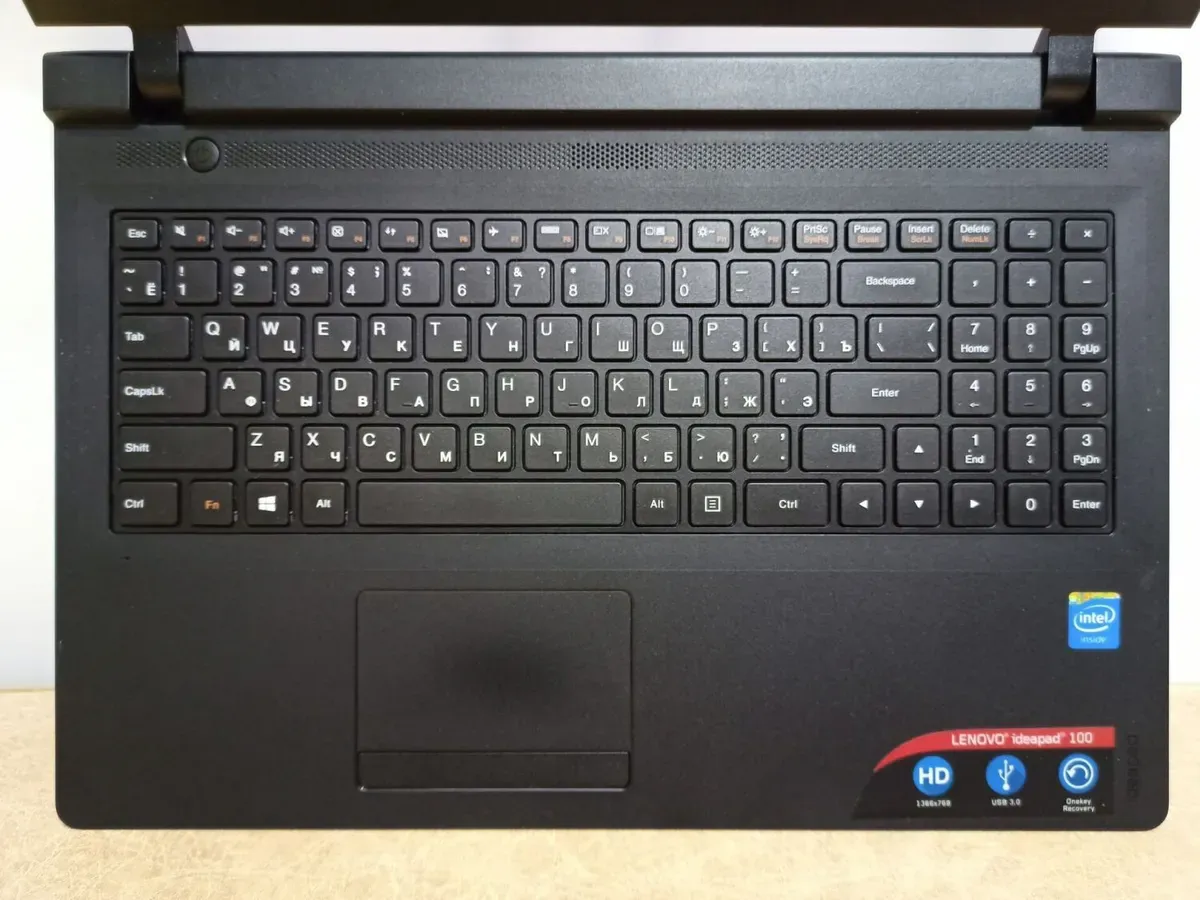 Ноутбук Б-клас Lenovo IdeaPad 100-15IBY / 15.6" (1366x768) TN / Intel Celeron N2840 (2 ядра по 2.16 - 2.58 GHz) / 4 GB DDR3 / 120 GB SSD / Intel HD Graphics / WebCam б/в