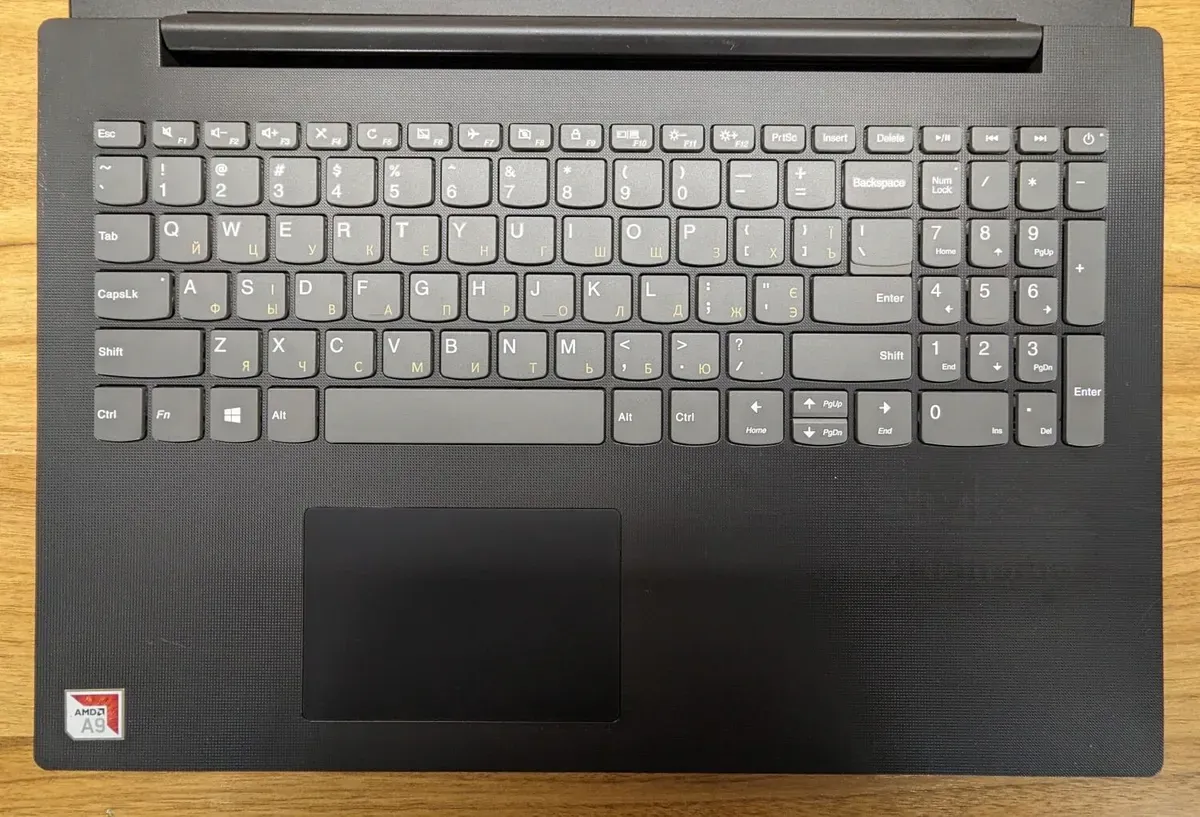 - Комплектація: ноутбук, зарядний пристрій, наклейки на клавіатуру