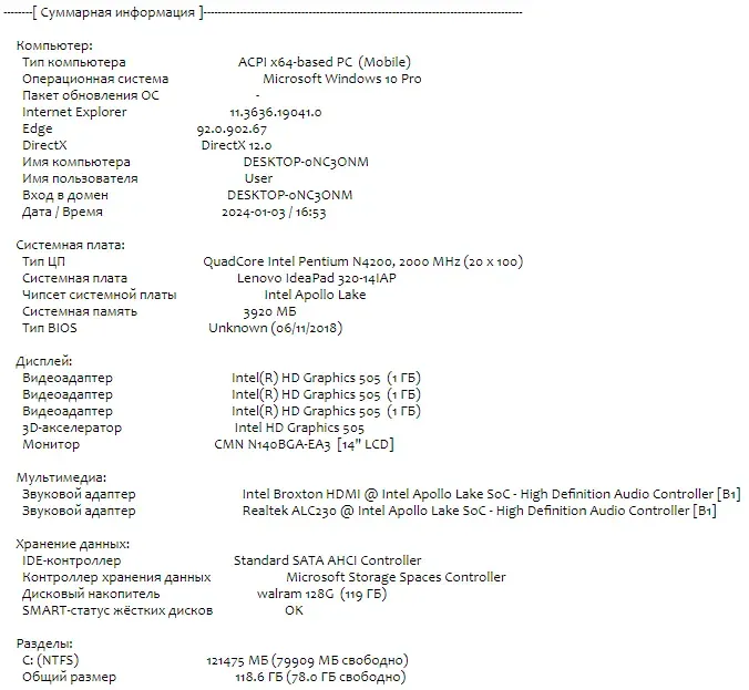 Ноутбук Б-клас Lenovo IdeaPad 320-14IAP з екраном 14" (1366x768) TN на базі процесора Intel Pentium N4200 і оперативної пам'яті 4 GB DDR3 для роботи і домашніх завдань