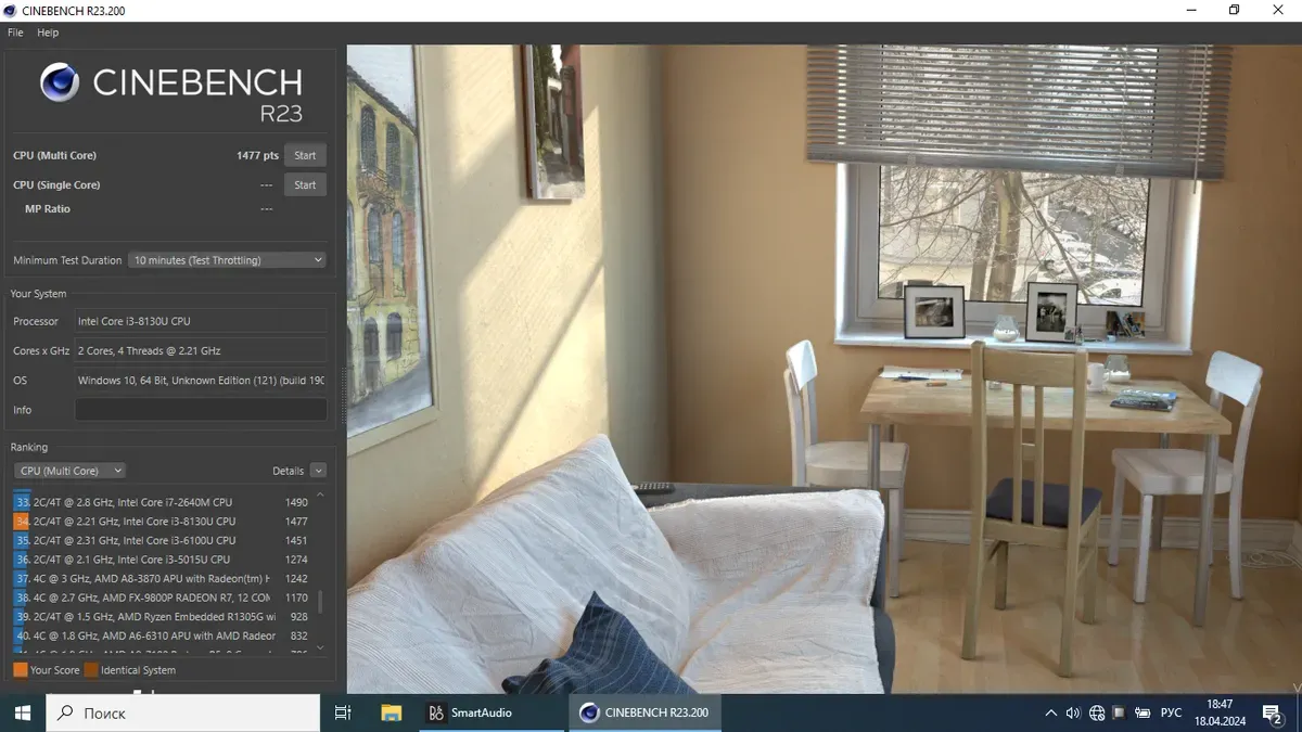 - Процесор: Intel Core i3-8130U (2 (4) ядра по 2.2 - 3.4 GHz), 4 MB Smart Cache