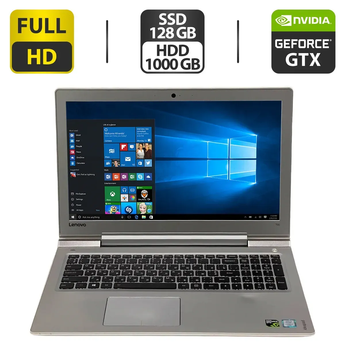 Ноутбук Б-клас Lenovo IdeaPad 700-15ISK / 15.6" (1920x1080) TN / Intel Core i7-6700HQ (4 (8) ядра по 2.6 - 3.5 GHz) / 16 GB DDR4 / 128 GB SSD + 1000 GB HDD / nVidia GeForce GTX 950M, 4 GB DDR3, 128-bit / WebCam / Windows 10 Pro б/в