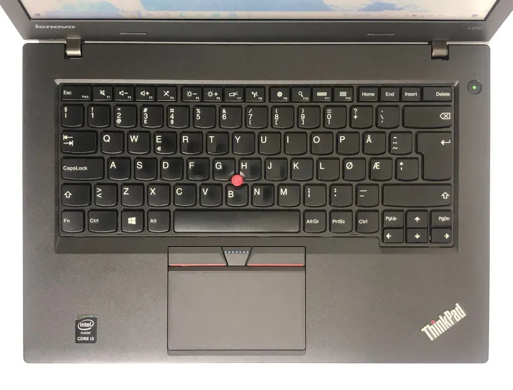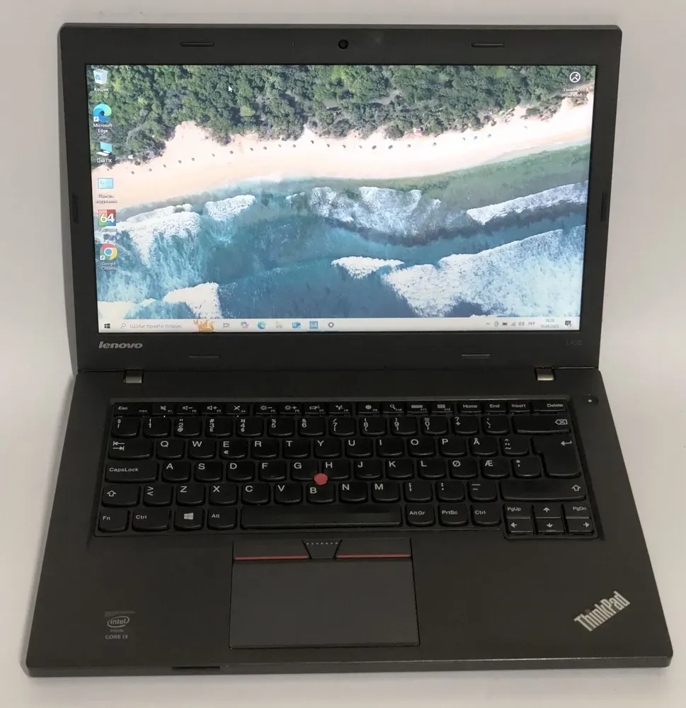 Ноутбук Б-клас Lenovo ThinkPad L450 з екраном 14" (1366x768) TN на базі процесора Intel Core i3-5005U та оперативної пам'яті 4 GB DDR3 для роботи та домашніх завдань