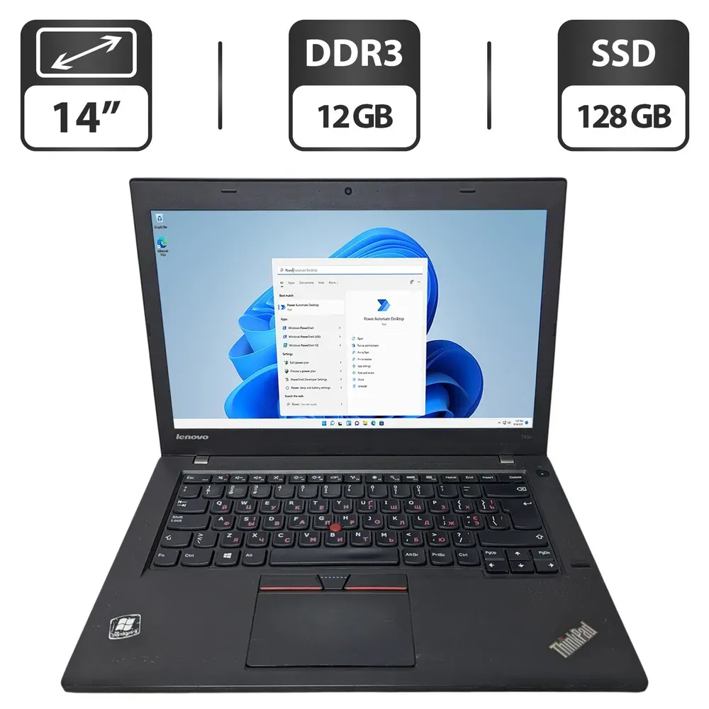 Ноутбук Б-клас Lenovo ThinkPad T450 c екраном 14" (1366x768) TN на базі процесора Intel Core i5-5300U та оперативною пам'яттю 8 GB DDR3 для офісної роботи та домашніх завдань