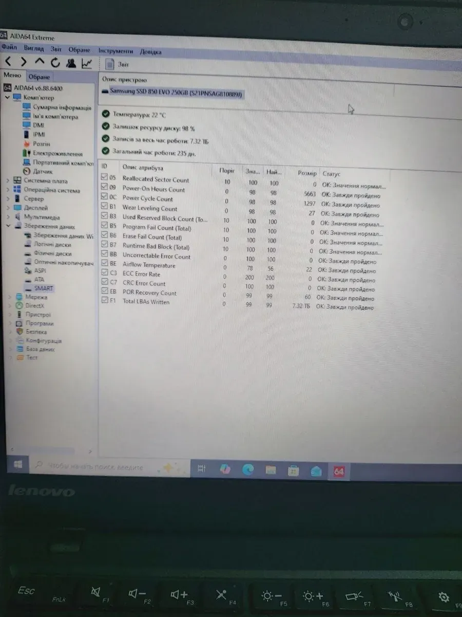- Встановлено SSD на 250 ГБ