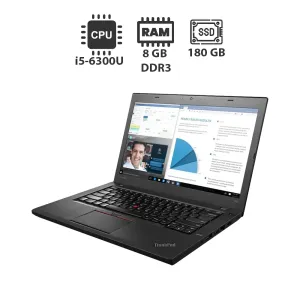 Ноутбук Б-клас Lenovo ThinkPad T460 з екраном 14" (1920x1080) IPS на базі процесора Intel Core i5-6300U та оперативною пам'яттю 8 GB DDR3 для роботи та домашніх завдань