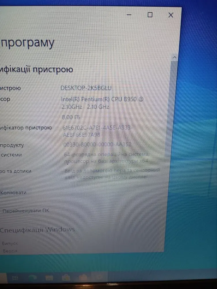 - Процесор: Intel Pentium B950 (2 ядра по 2.1 GHz), 2 MB Cache