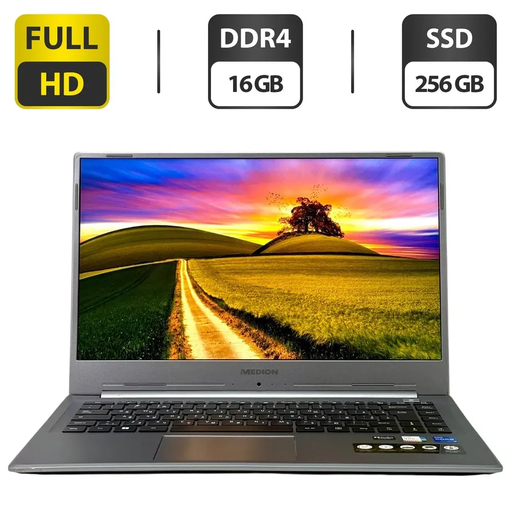 Ноутбук Б-клас Medion Akoya S15449 / 15.6" (1920x1080) IPS / Intel Core i5-1135G7 (4 (8) ядра по 4.2 GHz) / 16 GB DDR4 / 256 GB SSD / Intel Iris Xe Graphics / WebCam / Windows 11 Pro б/в