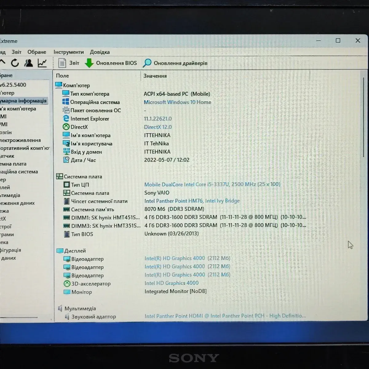 - Графіка: інтегрована Intel HD Graphics 4000 (до 1792 MB з ОЗП)