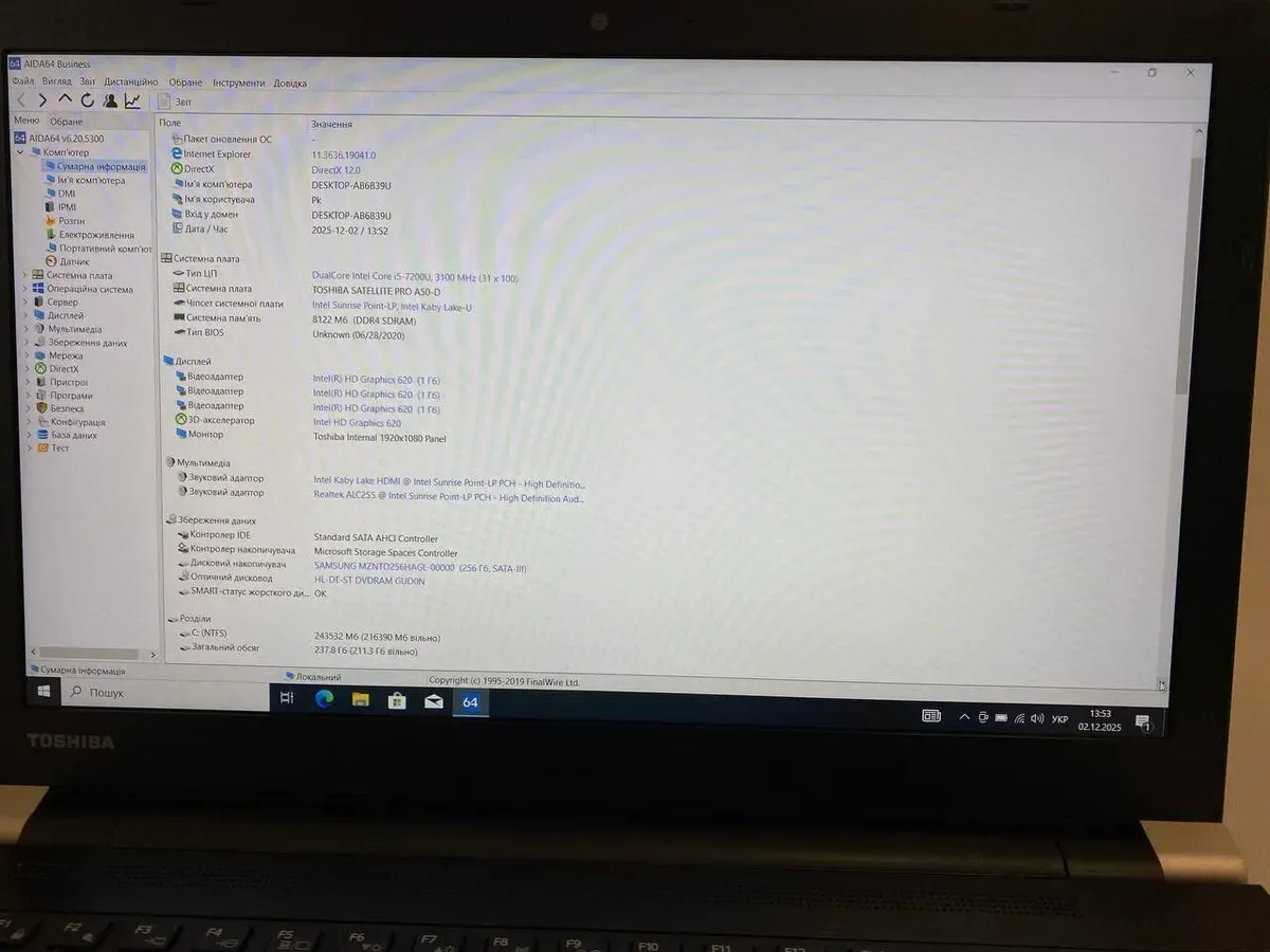 - Графіка: інтегрована Intel HD Graphics 620 (до 1792 МБ з ОЗУ)