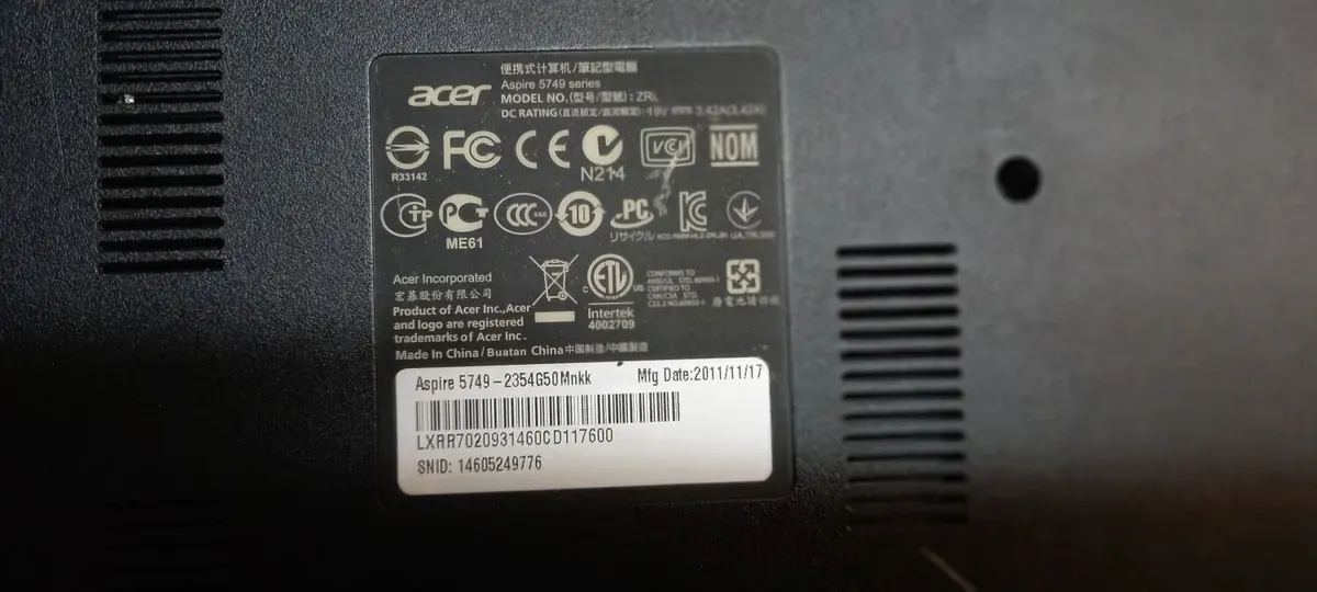 Ноутбук Б-клас Acer Aspire 5749 з екраном 15.6" (1366x768) TN на базі процесора Intel Core i3-2350M та оперативною пам'яттю 4 GB DDR3 для роботи та домашніх завдань