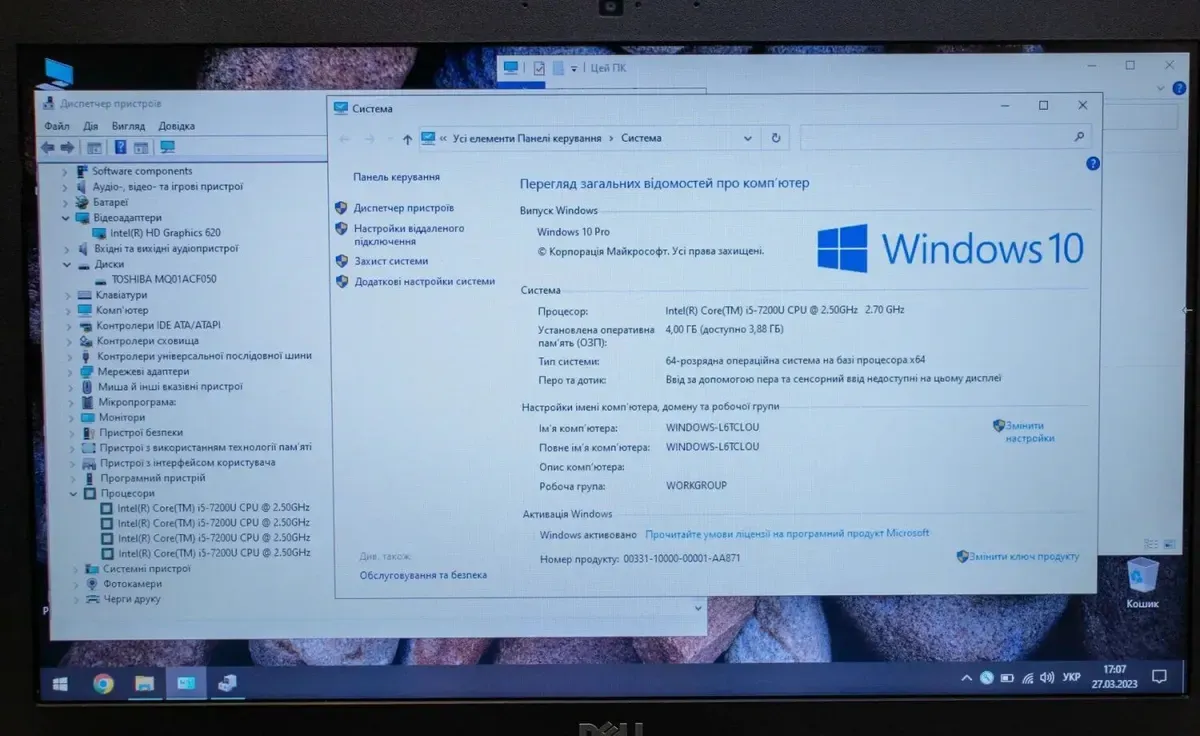 - Процесор: Intel Core i5-7200U (2 (4) ядра по 2.5 - 3.1 GHz), 3 MB Smart Cache