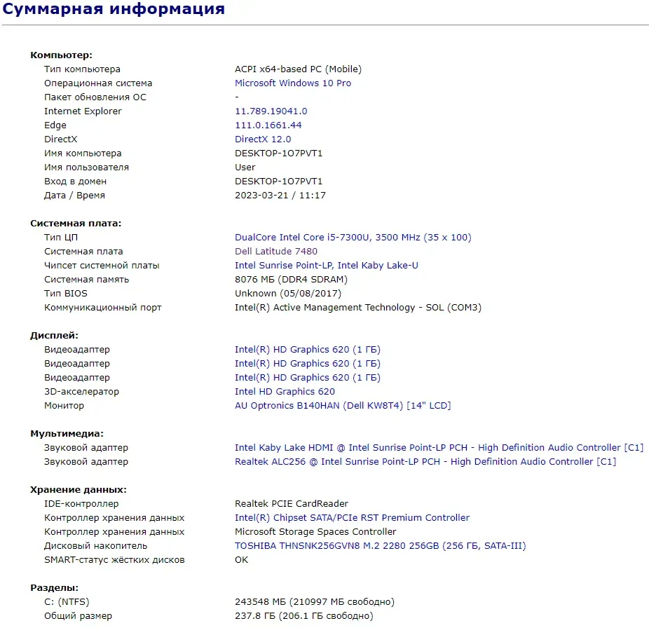 - Постійна пам'ять: 256 GB SSD M.2 (Toshiba THNSNK256GVN8)