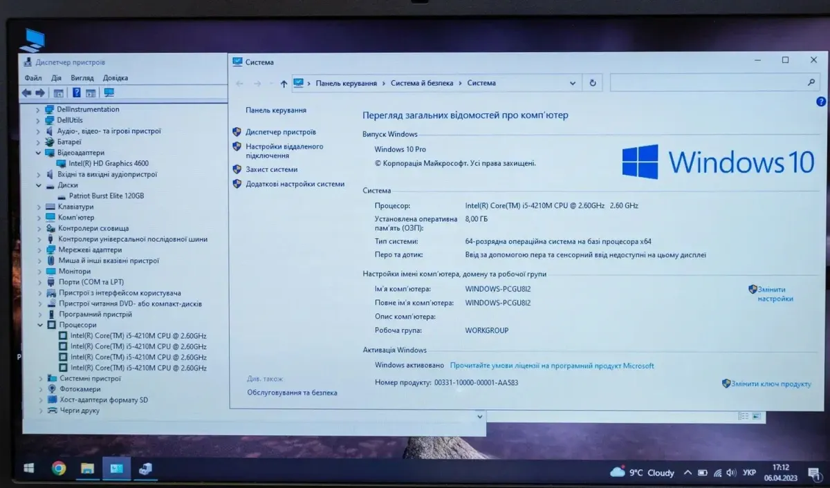 - Комплектація: ноутбук, зарядний пристрій, наклейки на клавіатуру
