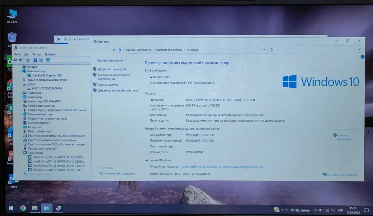 - Комплектація: ноутбук, зарядний пристрій, наклейки на клавіатуру