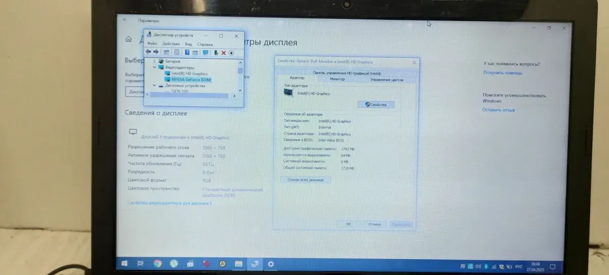- Графіка: дискретна nVidia GeForce 820M, 1 GB DDR3, 64-bit; інтегрована Intel HD Graphics (до 1792 MB із ОЗП)