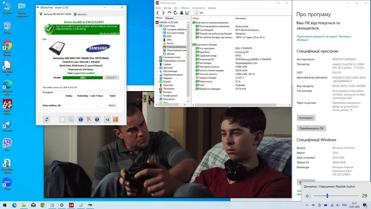 - Процесор: Intel Core i5-7200U (2(4) ядра по 2.5 - 3.1 GHz), 3 MB Smart Cache