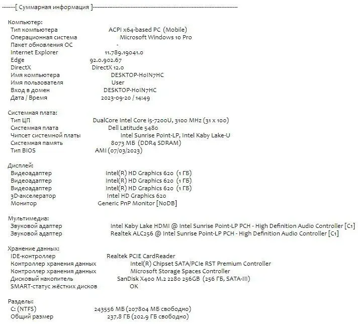 - Постійна пам'ять: 256 GB SSD M.2 (SanDisk X400)