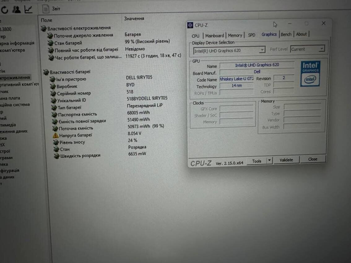 - Графіка: інтегрована Intel UHD Graphics 620 (до 1792 Мб з ОЗУ)