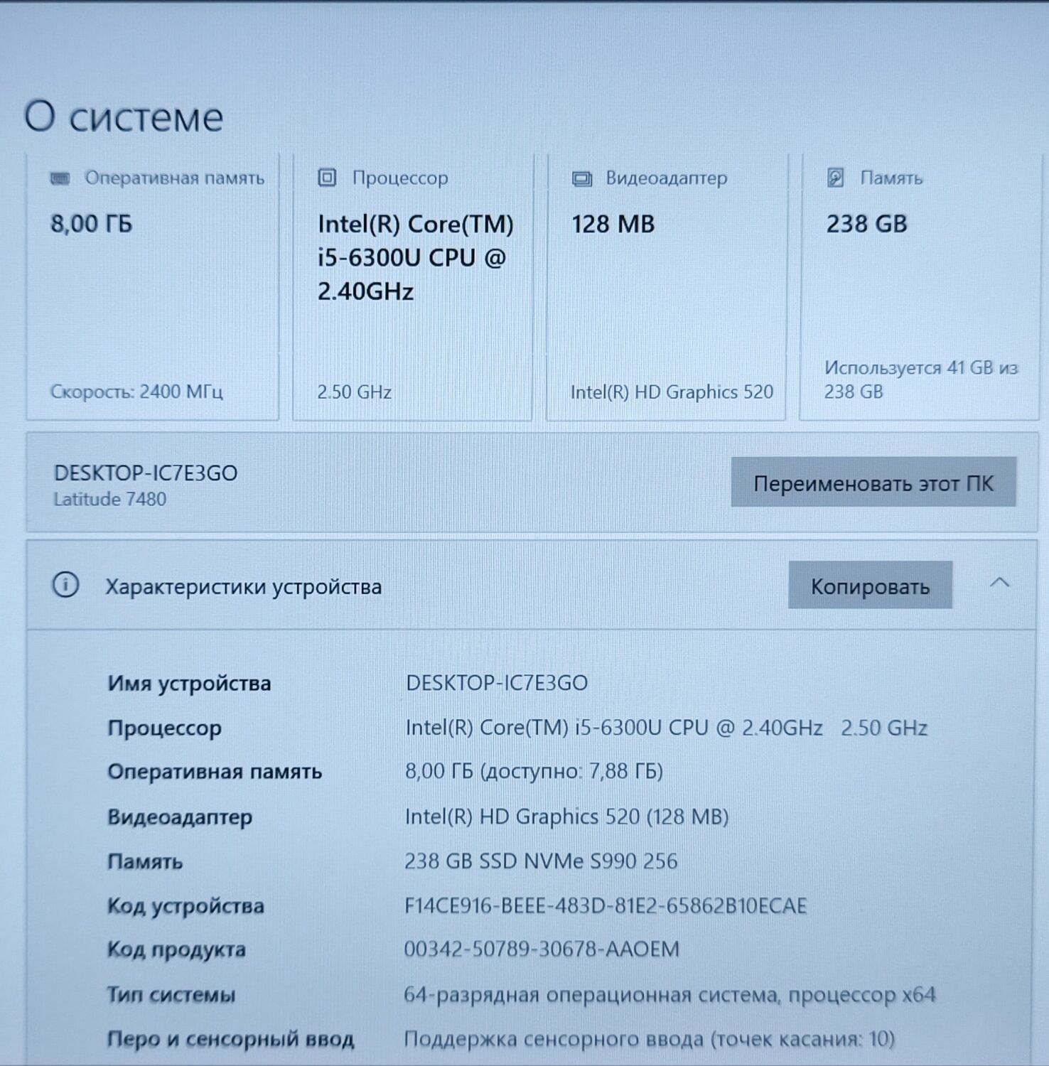 - Модель: Dell Latitude 7480