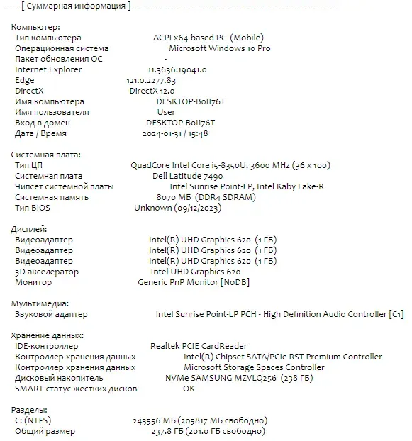 - Постійна пам'ять: 240 GB SSD M.2 NVMe (Samsung)