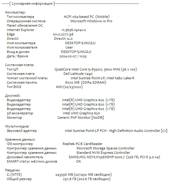 - Операційна система: Windows 10 активована вшитим в BIOS ключем