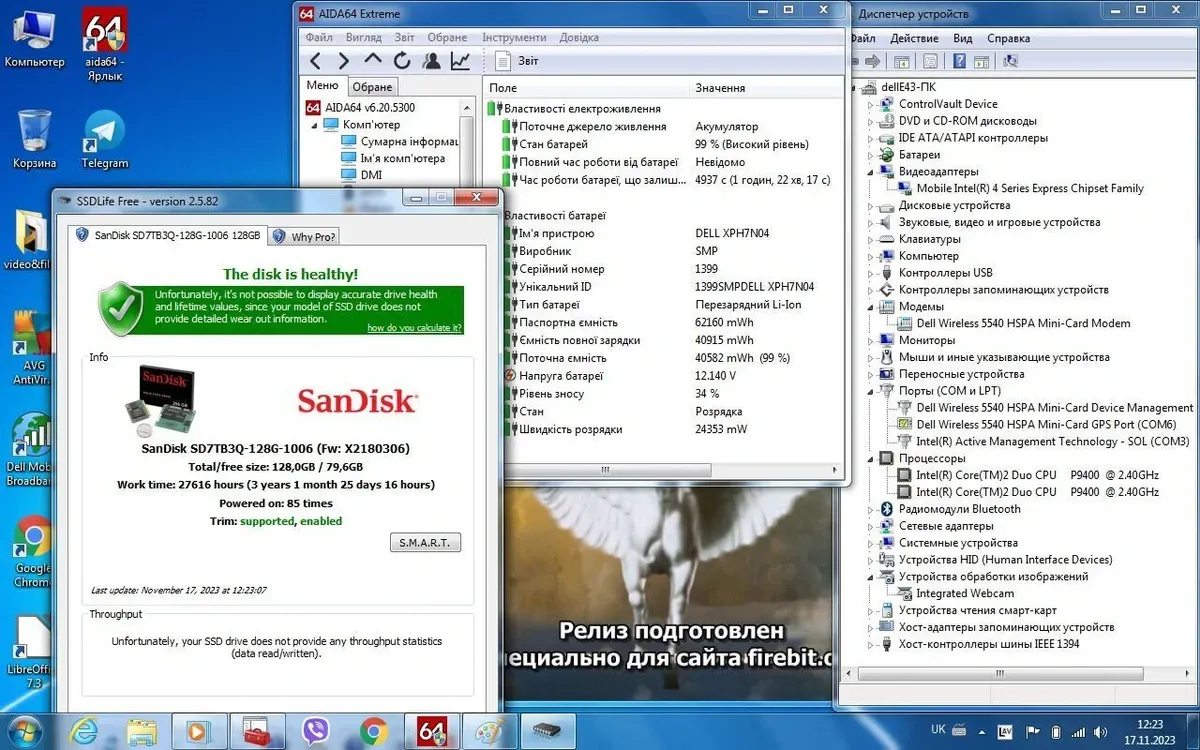 - Процесор: Intel Core 2 Duo SP9400 (2 ядра по 2.4 GHz), 6 MB Cache