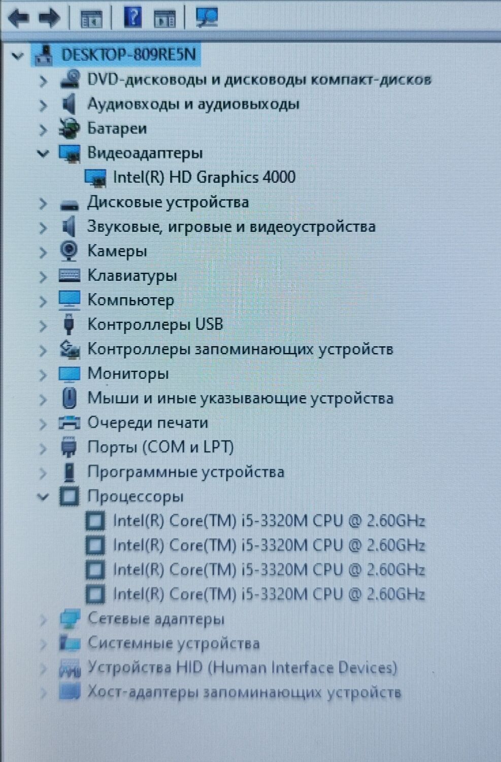 - Процесор: Intel Core i5-3320M (2 (4) ядра по 2,6 - 3,3 ГГц), 3 МБ кеш-пам'яті