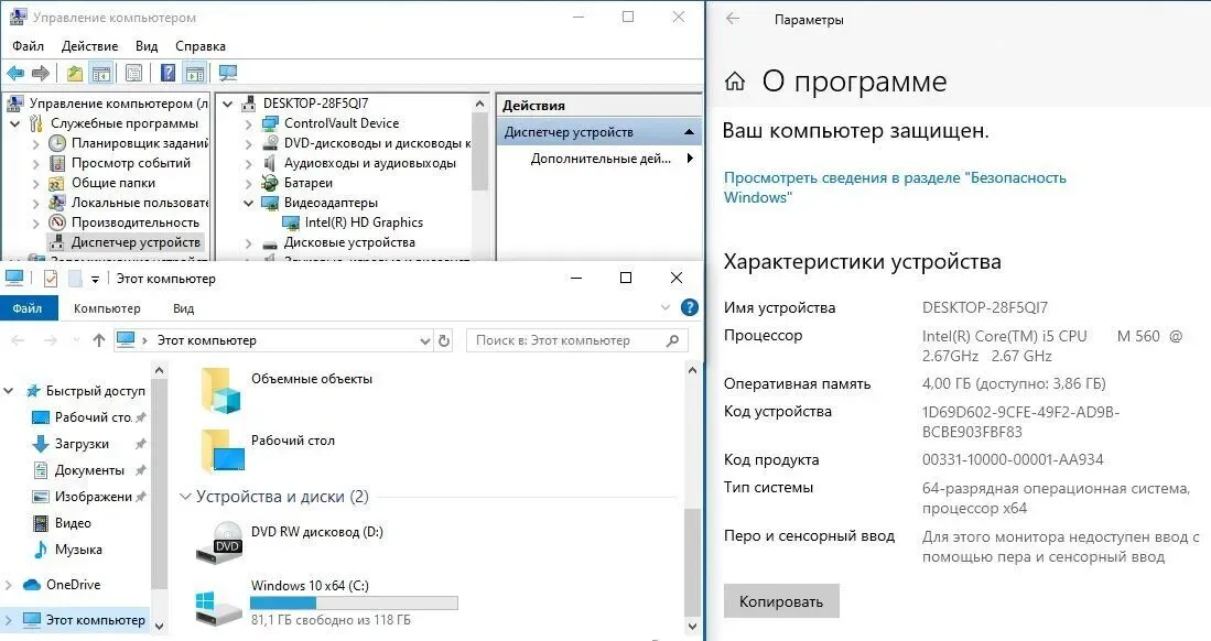 - Процесор: Intel Core i5-560M (2 (4) ядра по 2.67 - 3.0 GHz), 3 MB Smart Cache