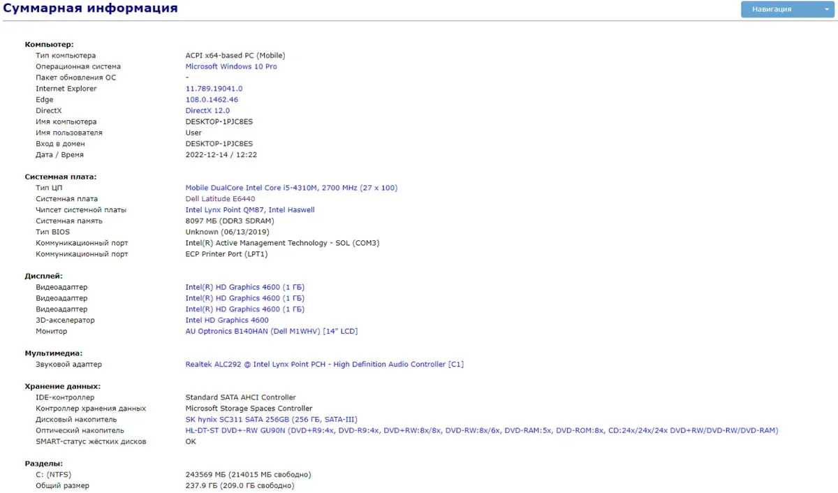- Графіка: інтегрована Intel HD Graphics 4600 (до 1792 MB з ОЗП)