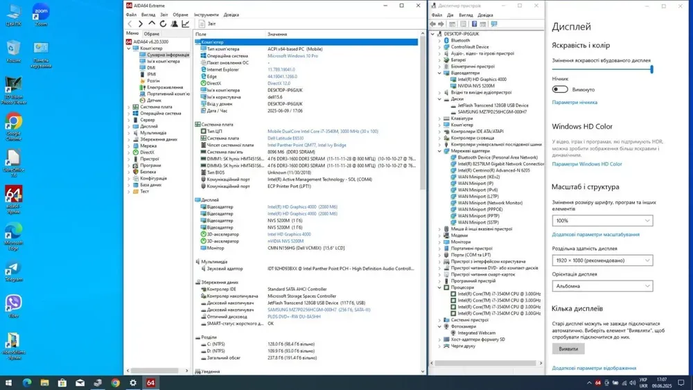 - Процесор: Intel Core i7-3540M (2 (4) ядра по 3.0 - 3.7 GHz), 4 MB Smart Cache