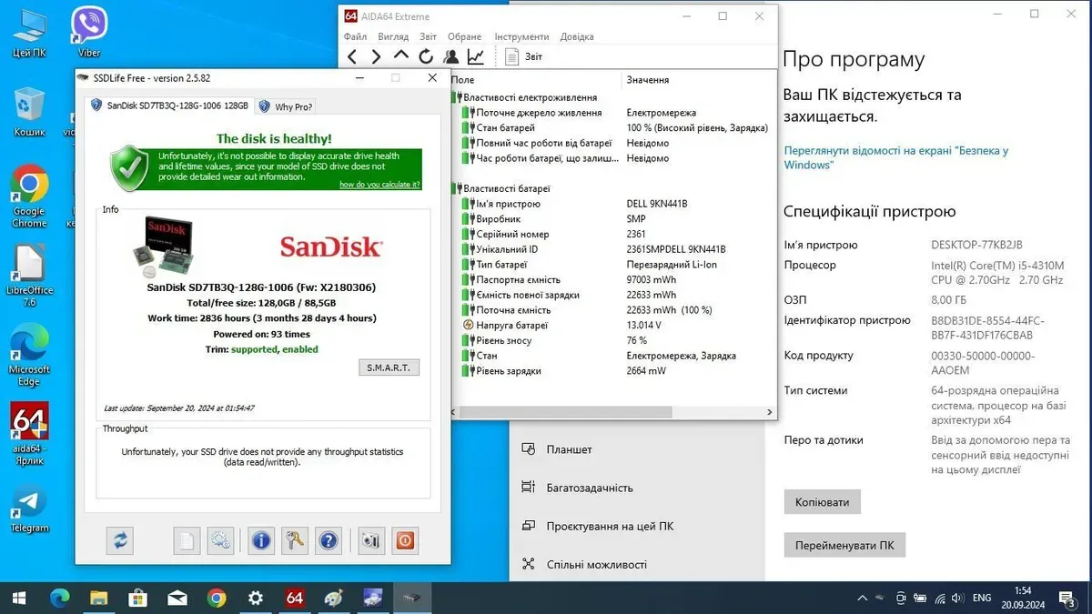 - Комплектація: ноутбук, зарядний пристрій, наклейки на клавіатуру