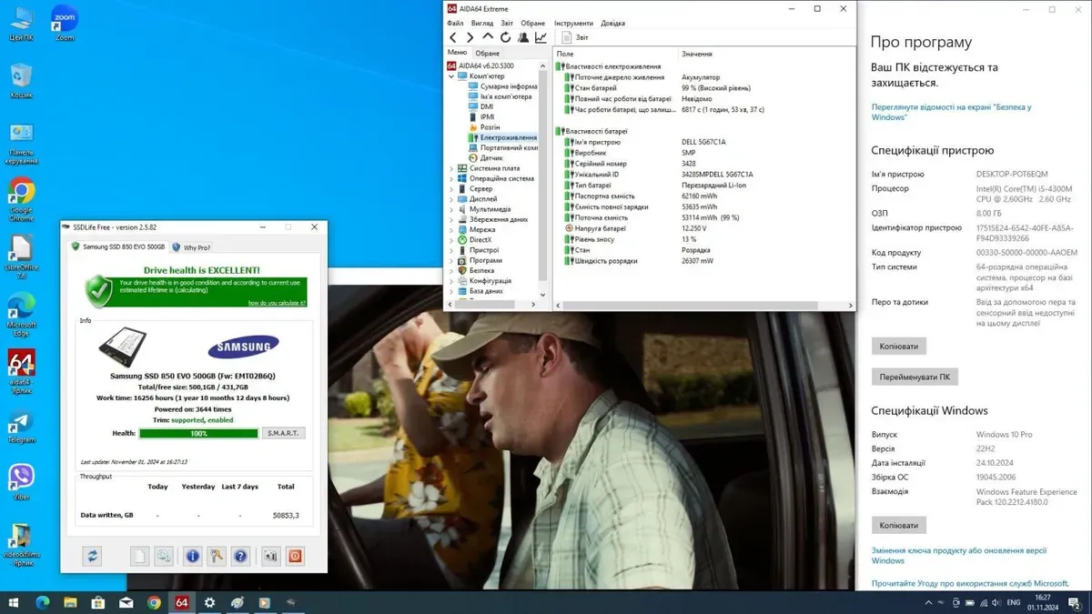 - Комплектація: ноутбук, зарядний пристрій, наклейки на клавіатуру