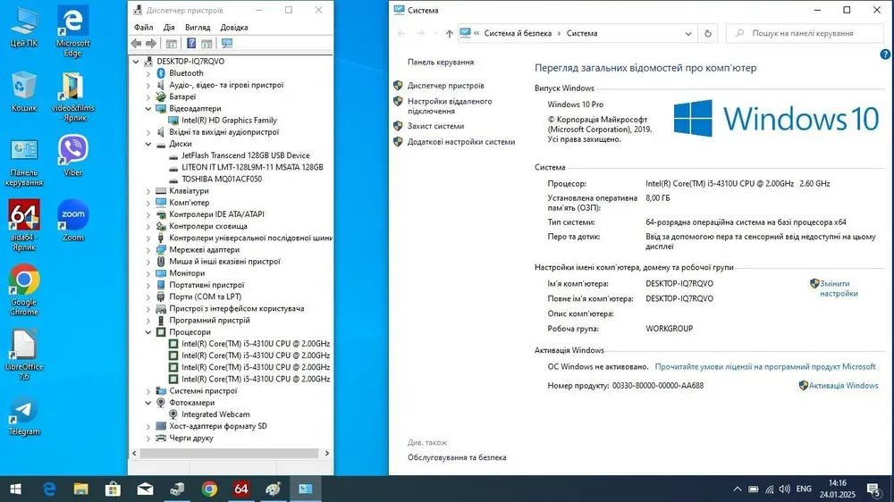 - Процесор: Intel Core i5-4310U (2(4) ядра по 2.0 - 3.0 GHz), 3 MB Smart Cache