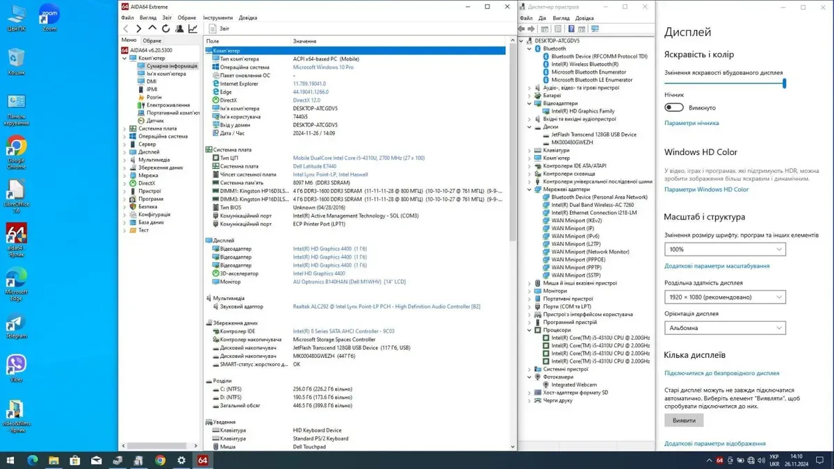 Ноутбук Dell Latitude E7440 з екраном 14" (1920x1080) IPS на базі процесора Intel Core i5-4310U та оперативною пам'яттю 8 GB DDR3 для офісної роботи та домашніх завдань