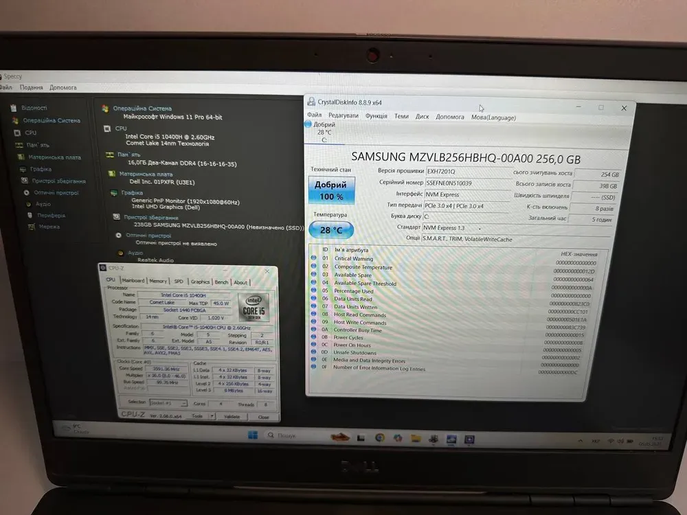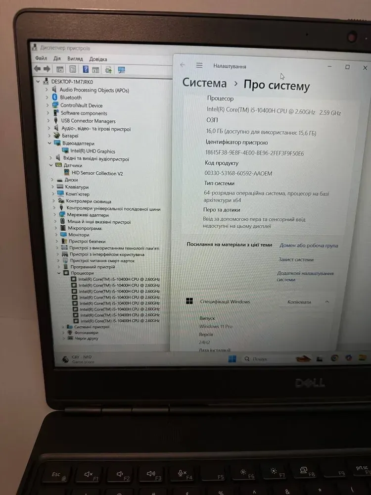 - Процесор: Intel Core i5-10400H (4 (8) ядра по 2.6 - 4.6 GHz), 8 MB Smart Cache