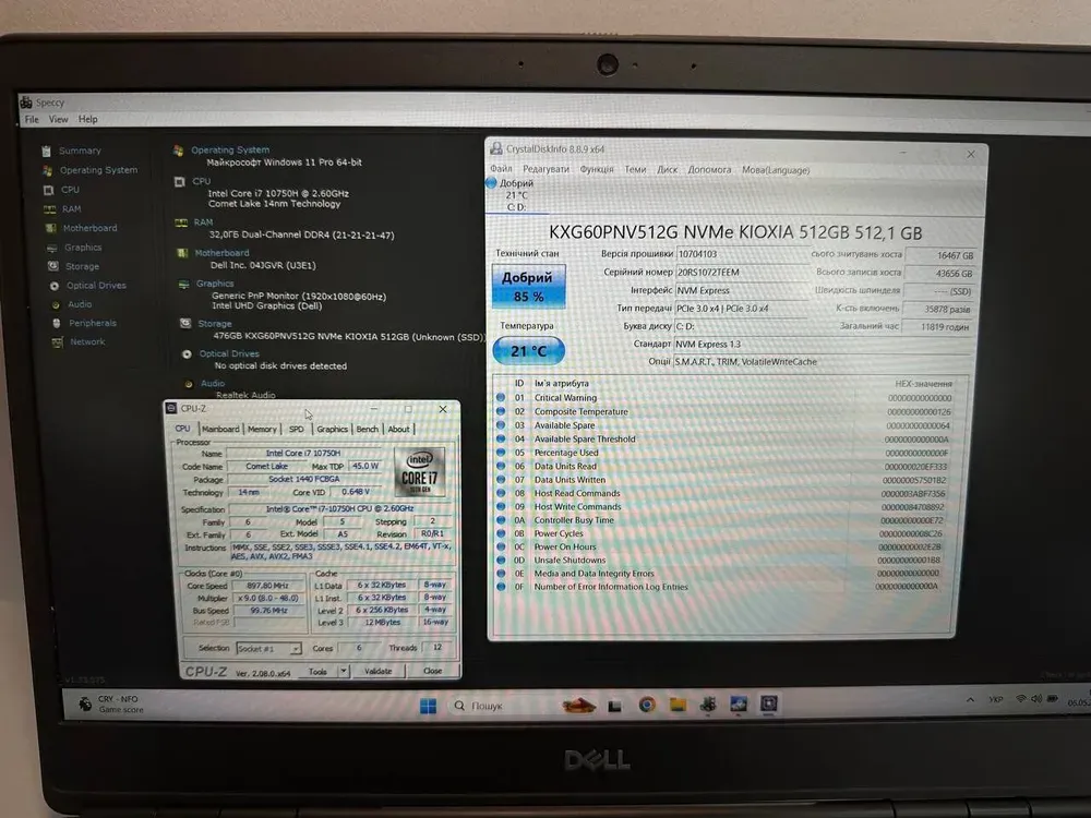 - Процесор: Intel Core i7-10750H (6 (12) ядер по 2.6 - 5.0 GHz), 12 MB Smart Cache