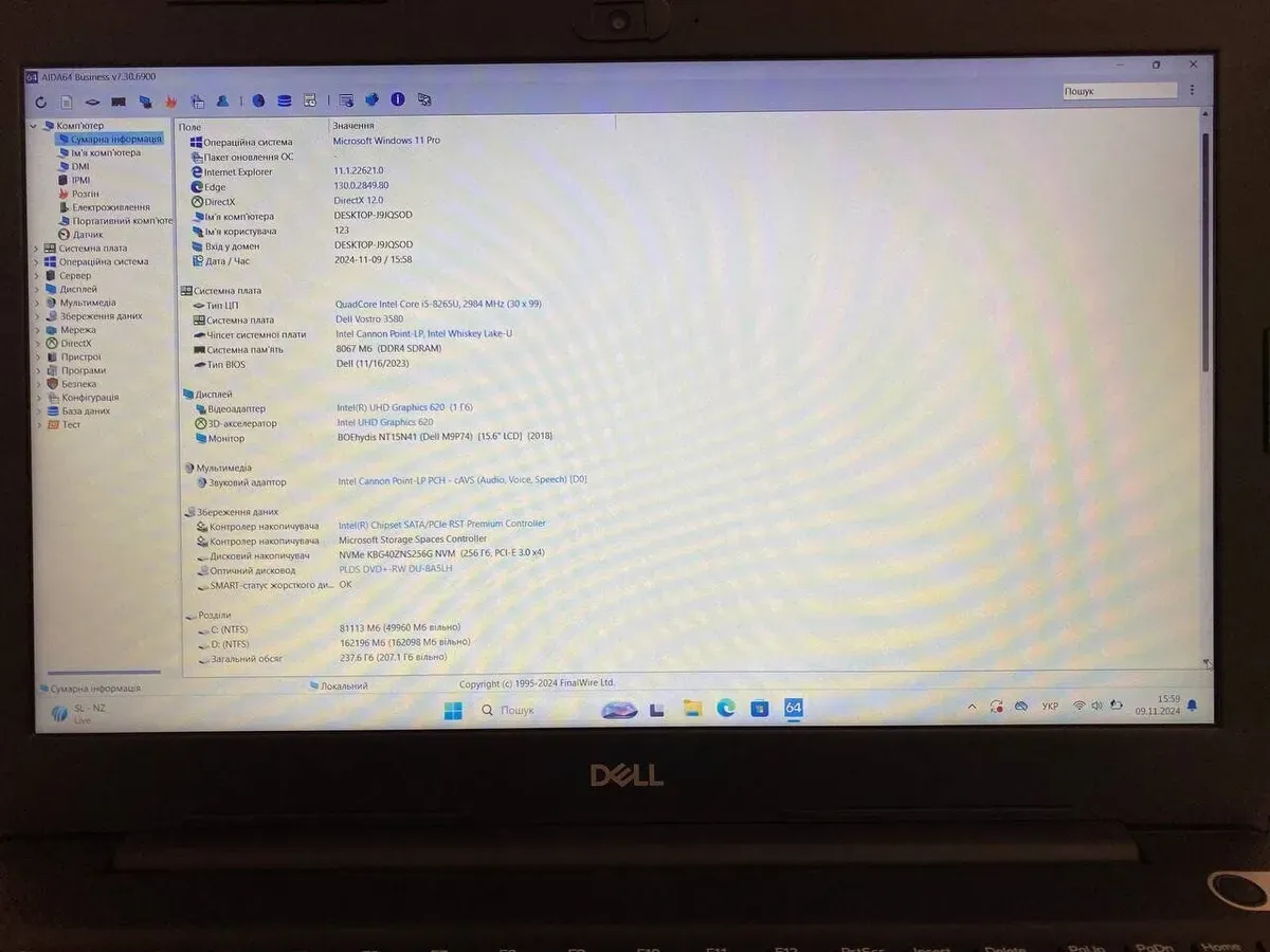 - Модель: Dell Vostro 3580