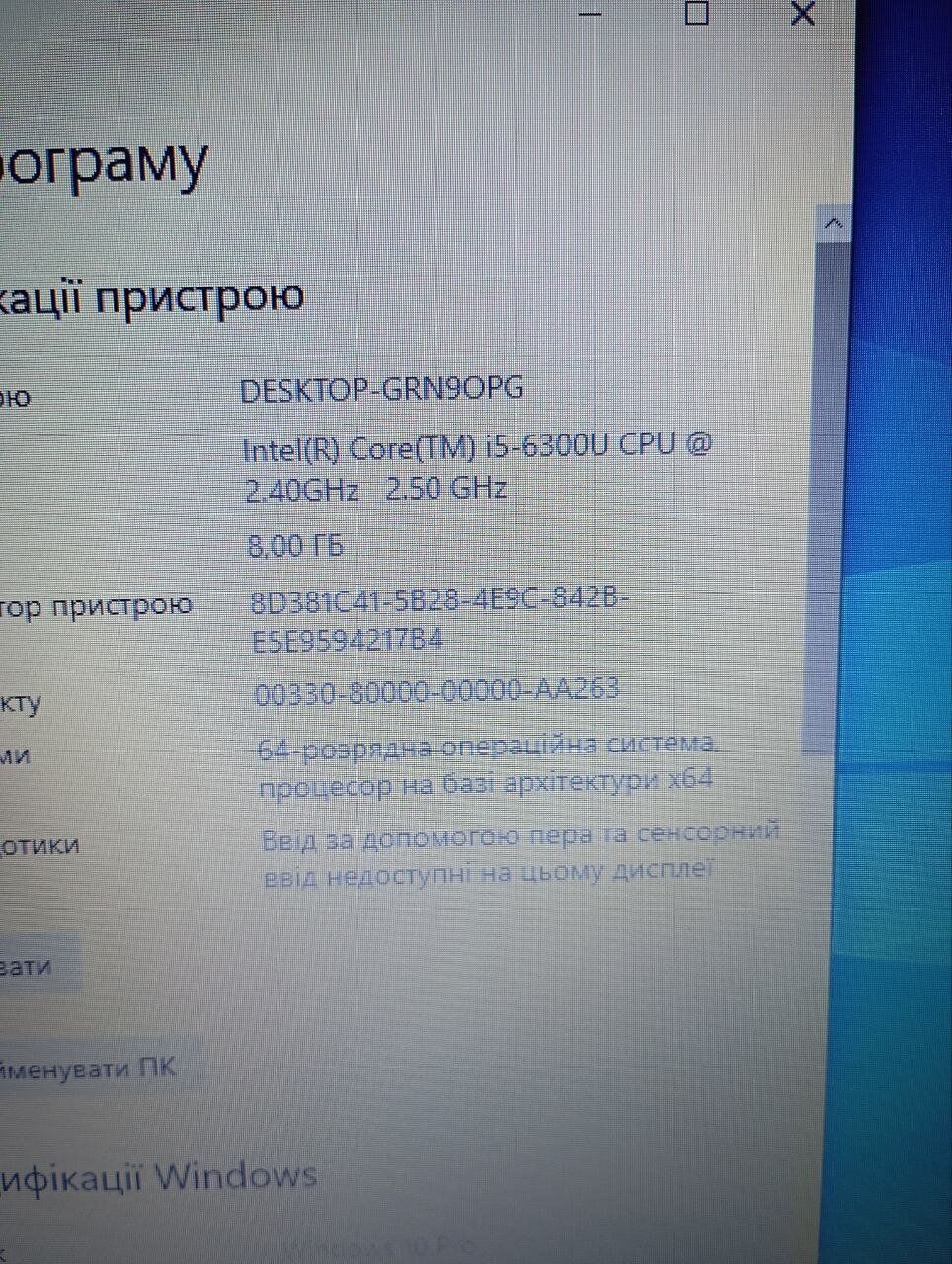 - Процесор: Intel Core i5-6300U (2 (4) ядра по 2.4 - 3.0 GHz), 3 MB Smart Cache