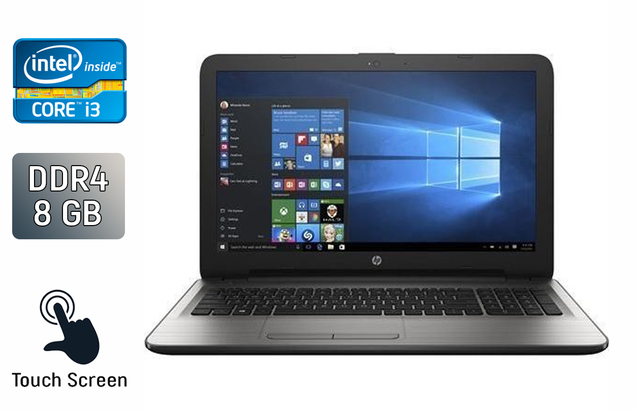 Ноутбук HP 15-ay041wm з екраном 15.6" (1366x768) TN Touch на базі процесора Intel Core i3-6100U та оперативною пам'яттю 8 GB DDR4 для офісної роботи та навчання