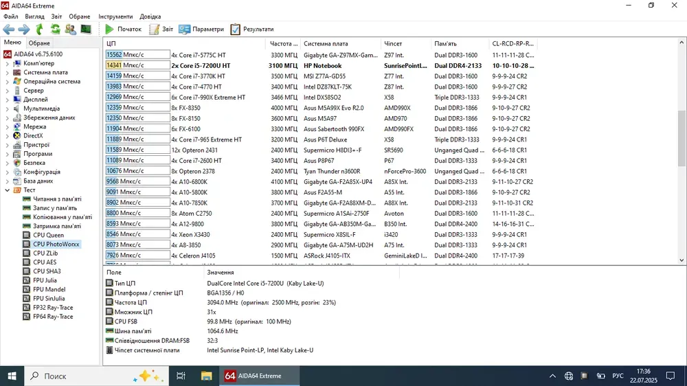 - Процесор: Intel Core i5-7200U (2 (4) ядра по 2.5 - 3.1 GHz), 3 MB Smart Cache