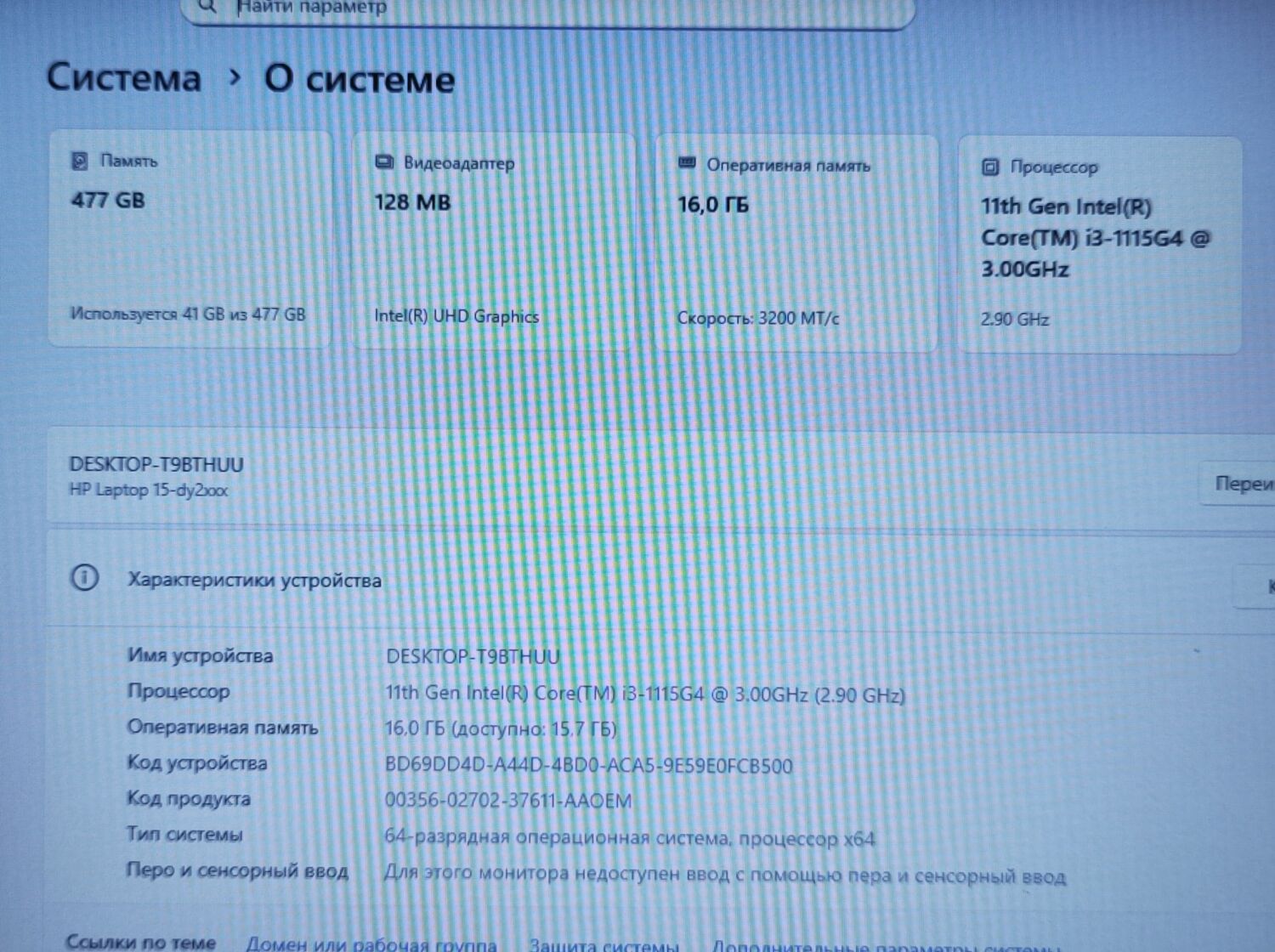 - Процесор: Intel Core i3-1115G4 (2 (4) ядра з тактовою частотою 4,1 ГГц), 6 МБ Smart Cache
