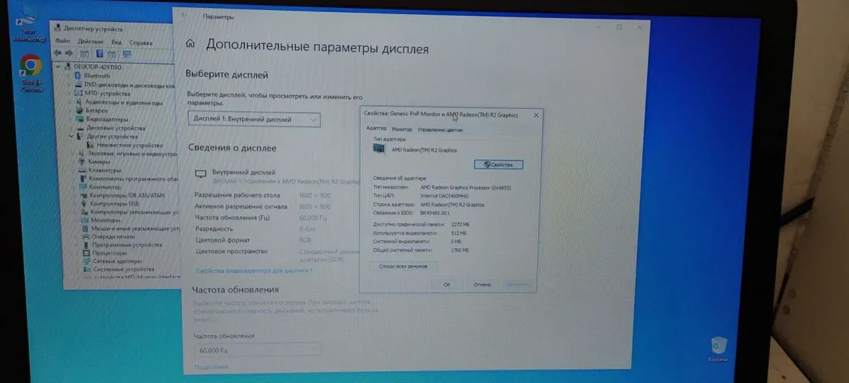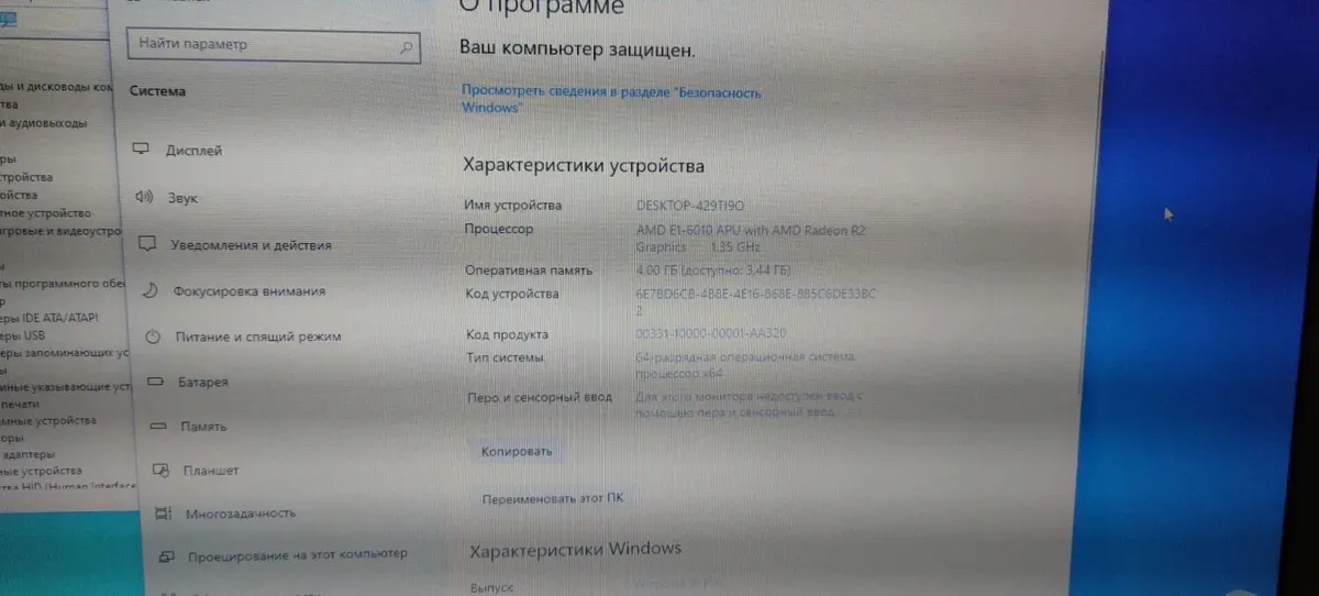 - Процесор: AMD E1-6010 (2 ядра по 1.35 GHz), 1 MB Cache