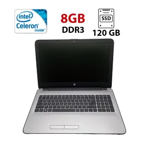 Ноутбук HP 250 G5 / 15.6" (1366x768) TN / Intel Celeron N3060 (2 ядра по 1.6 - 2.48 GHz) / 8 GB DDR3 / 120 GB SSD / HD Graphics 400 / WebCam б/в