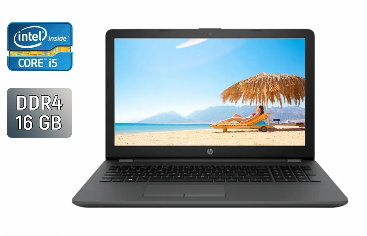 Ноутбук HP 250 G6 / 15.6" (1366x768) TN / Intel Core i5-7200U (2 (4) ядра по 2.5 - 3.1 GHz) / 16 GB DDR4 / 256 GB SSD / Intel HD Graphics 620 / HDMI / WebCam б/в