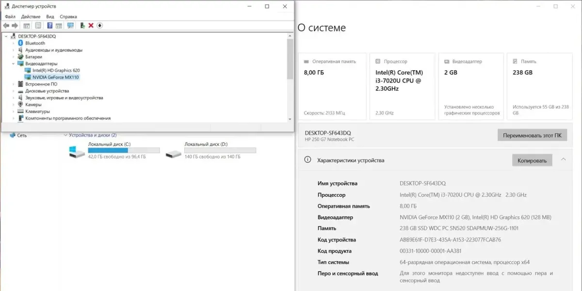 - Процесор: Intel Core i3-7020U (2 (4) ядра по 2.3 GHz), 3 MB Smart Cache
