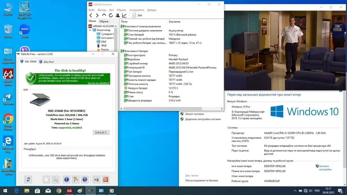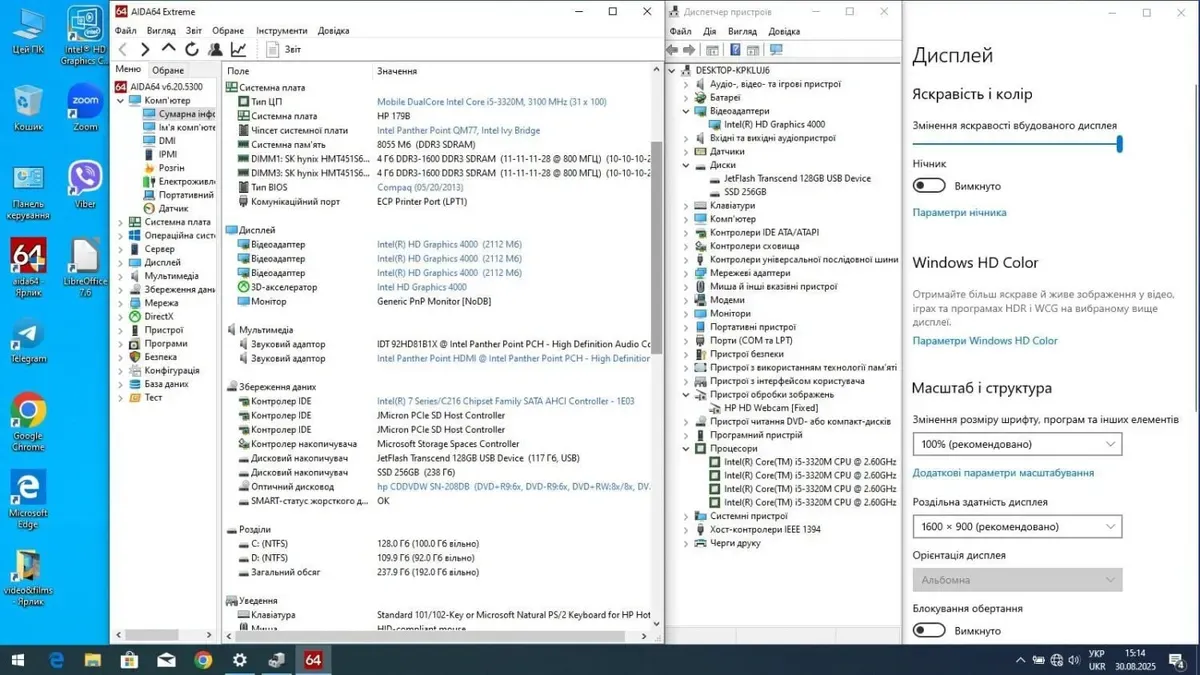 - Процесор: Intel Core i5-3320M (2 (4) ядра з тактовою частотою 2,6–3,3 ГГц), 3 МБ Smart Cache